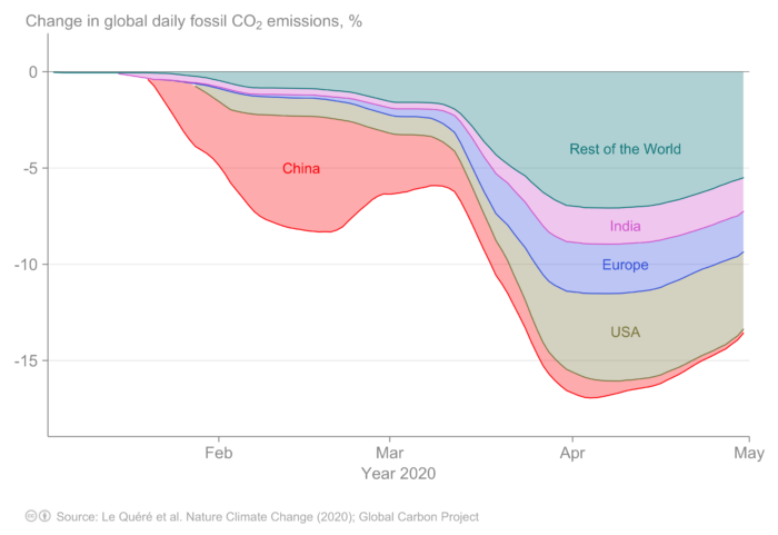 虽然这些变化的预计是短暂的,但研究人员认为,随着世界经济的陆续重启,后续碳排放量将呈上升趋势。