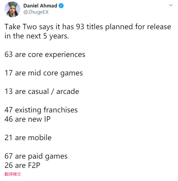 对此,业内知名分析师Daniel Ahmad分析称,这93个游戏中: