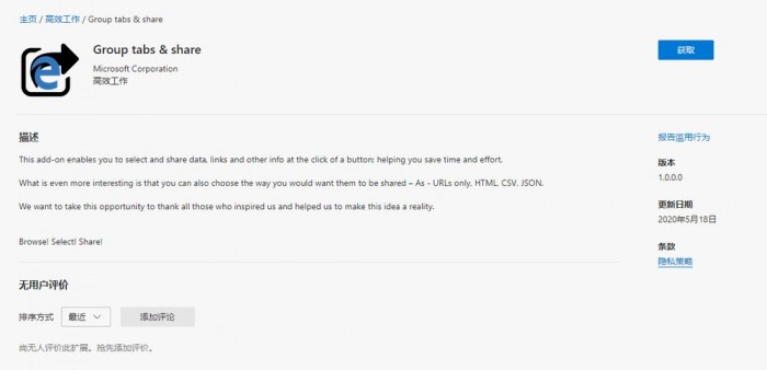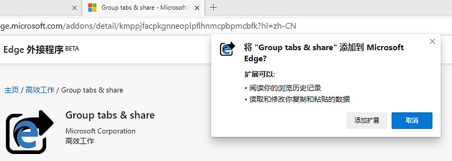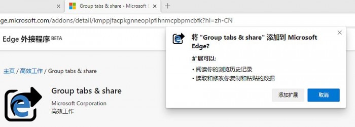 在近日发布的Chrome 83版本更新中,谷歌引入了对标签页群组的支持。微软也希望基于Chromium的Edge浏览器能够获得这项功能,本周在自家Edge官方扩展商城上推出了名为“Group tabs & Share”的扩展程序,目前已经开放下载。