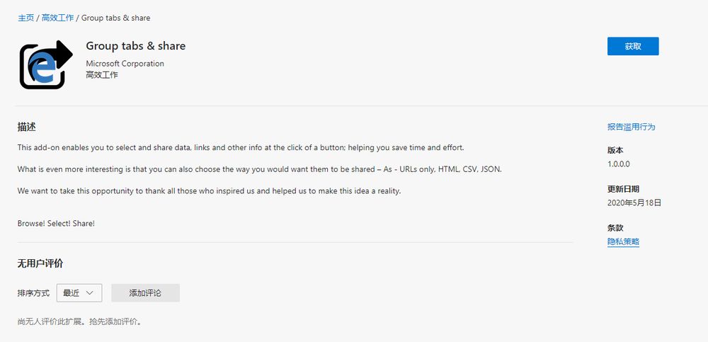 微软在插件说明中解释说“这个插件可以让你在点击按钮时选择和分享数据、链接和其他信息;帮助你省时省力。更有趣的是,你还可以选择你想要的共享方式--以URLs、HTML、CSV、JSON的方式。”