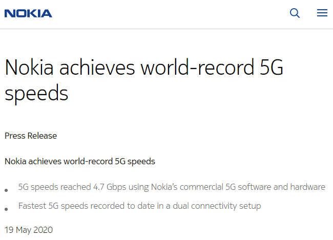 外媒报道称,诺基亚刚刚在位于达拉斯的北美总部研发实验室打破了 5G 速率纪录。借助 28GHz 和 39GHz 毫米波频段内的八个 100MHz 信道,其顺利地在 OTA 网络下飙出了 4.7Gbps 的速率。据悉,本次测试是在美国大型运营商正在部署的 AirScale Radio 基站平台上进行的,并通过 RAN 虚拟化和传统基带的配置组合达成了目标。