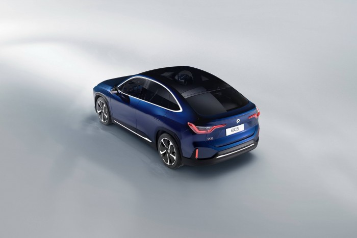 从侧面来看,新车采用了溜背式设计,车身轮廓圆润,整体造型十分动感,轮圈的造型也十分炫酷,同时其风阻系数为0.27Cd。此外,EC6还采用了一体化穹顶式玻璃车顶,面积达2.1㎡,可为车内提供通透感和出色的采光效果。车尾部分,新车的尾部造型比较敦实,并带有“小鸭尾”设计。
