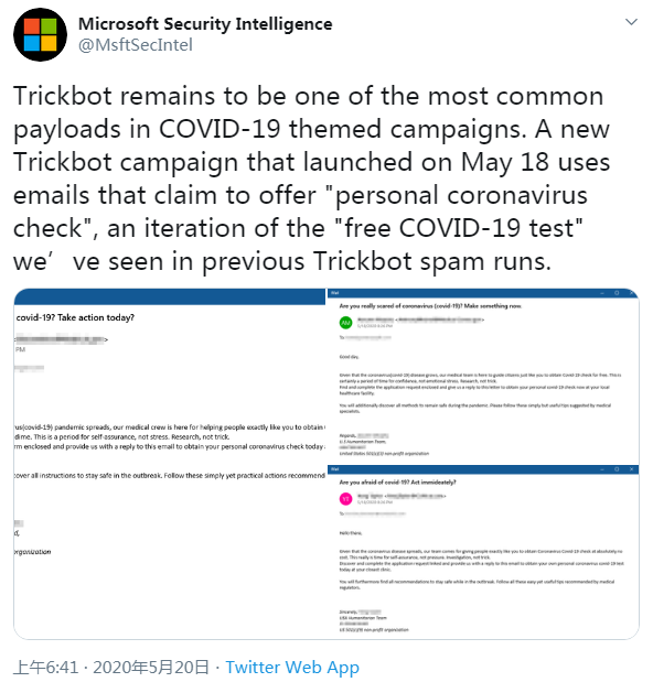 当然,这并不是我们在 2020 年内首次见到利用 COVID-19 散播恐慌的网络钓鱼邮件攻击,而且肯定也不会是最后一次。