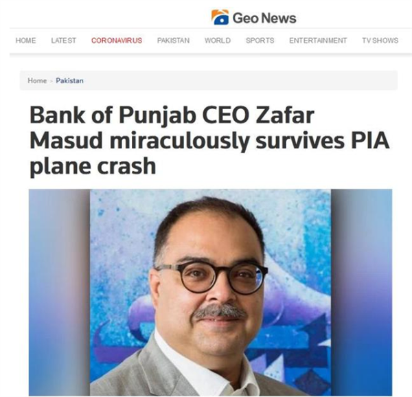空难的死亡率基本上100%,但是巴基斯坦坠机上竟然有乘客活了下来,真是不幸中的万幸,真是福大命大!当地时间22日,巴基斯坦一客机在卡拉奇坠毁。刚刚,巴基斯坦媒体Geo News发布消息称,机上乘客之一的旁遮普银行首席执行官扎法尔·马苏德(Zafar Masud)奇迹般幸存下来,只受了轻伤。