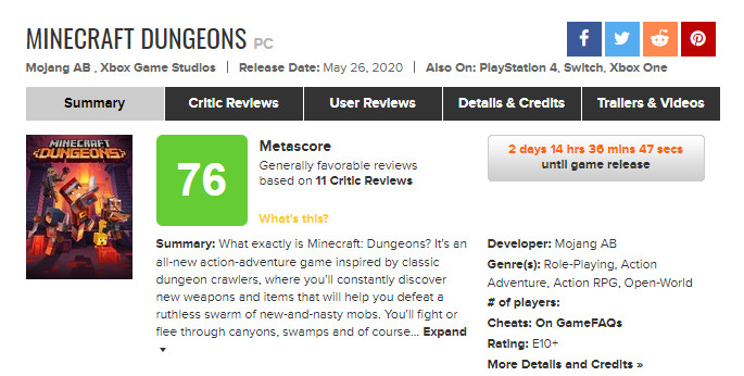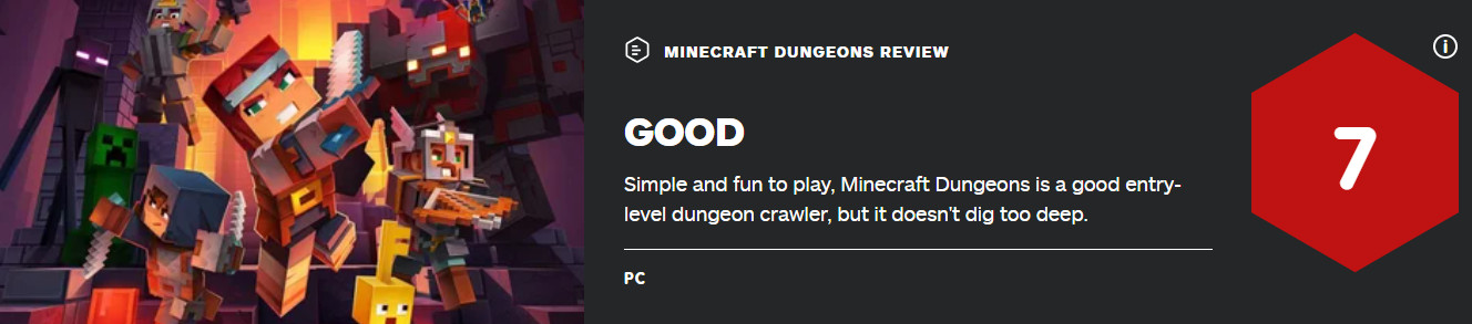 《我的世界:地下城》即将于5月28日正式发售,登陆PC、PS4、Xbox One和Switch。近日本作的媒体评分已经解禁,外媒IGN为本作打出7分评价。