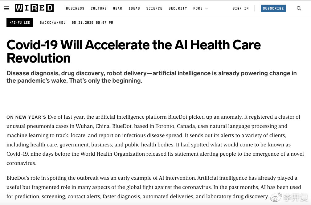BlueDot所监测到的异状,正是数月后撼动全球的新型冠状病毒肺炎(Covid-19),这比世界卫生组织首度公开警示新冠病毒的时间还要早上9天。