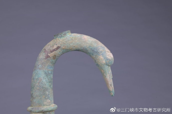 河南省三门峡市文物考古研究所官微发文称,该所考古工作者近日在当地一个发掘现场,发现一个鹅首曲颈青铜壶,壶中还存有不明液体,呈黄褐色,多达3000ml。据了解,这个青铜壶为鹅首,曲颈,垂腹,圈足,顶部有一小孔,造型独特,极为罕见。青铜曲颈壶出于西汉初期墓葬之中,墓内同时伴出的有铜鍪、铜盆、铁剑、玉剑具等,墓主身份应为中低等贵族。