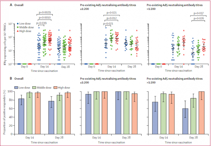 “该试验表明,单剂量的新型腺病毒新冠疫苗可在14天之内产生病毒特异性抗体和T细胞,使其有可能进一步研究。”