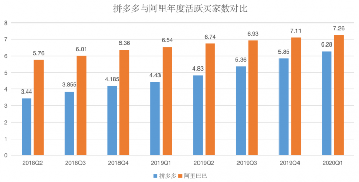 唯一的问题是,在拼多多的年度活跃买家数已经逼近阿里的情况下,它如何还能保持高额的增长?