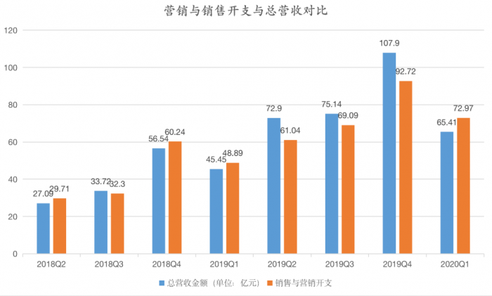 与拼多多强劲的用户增长势头相对应,在电商相对淡季的 Q1 季度,拼多多的营销及销售开支还是达到了 72.97 亿元,比其季度营收 65.41 亿元还要高出近 8 亿元。这导致拼多多在当季净亏损达到 41.19 亿元,远超市场预期。