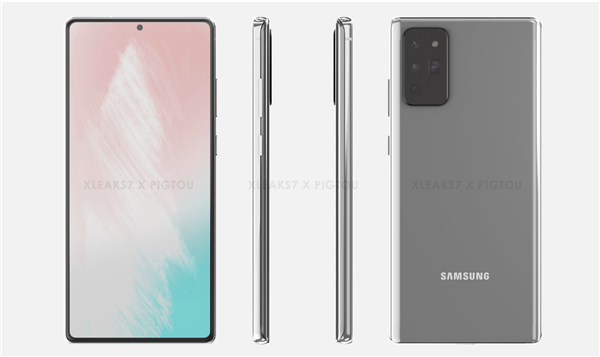 其实就在本周,Galaxy Note 20的渲染图曝光。其设计基本脱胎于Galaxy S20,同样是前置居中挖孔屏幕,金属边框,玻璃后盖,矩形摄像头。不同的是,Note 20底部有S Pen开孔,这也是Note系列的老传统了。