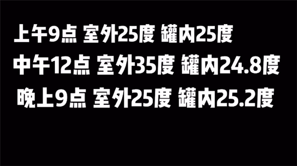 视频中,先后记录下了早上、中午、晚上的室外温度,分别是25°C、35°C、25°C。然后再通过加油站内的油管液位记录仪可知,在这三个时刻,油管内的油品温度,始终在25°C左右,包括最热的中午,油罐内油品的温度几乎没有变化。