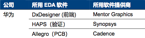 华为所用EDA软件三大厂商均有涉及,分别应用在前端、验证、PCB环节当中。