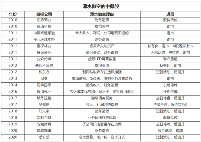 今年以来,除了瑞幸咖啡外,浑水公司还连续发布报告质疑过爱奇艺、跟谁学等国内公司造假。这些被浑水做空的公司,最后大多三种结果,股价出现短暂波动,私有化退市,回归A股,或直接停牌退市,目前已有6家公司退市。