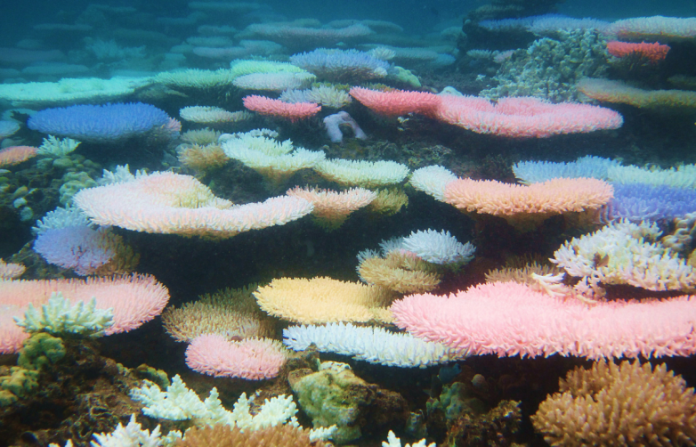 珊瑚白化会对珊瑚礁系统造成毁灭性的破坏。它发生在海水温度过高的时候,促使珊瑚失去了赋予它们颜色的藻类。科学家们多年来一直在研究珊瑚的白化现象,追踪珊瑚礁系统受到的破坏程度并监测其恢复情况。而他们注意到了一些奇怪的事情,发现白化的珊瑚礁系统并不像正常情况下那样变成白色。有时候,它们会变得五颜六色。但为什么会这样?