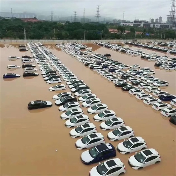 从网络流传的照片来看,现场一排排整齐停放的商品车,大概被雨水淹没至轮眉处,不排除乘员舱进水的可能,从车型来看,目测主要受影响的有飞度、缤智和讴歌等车型。被淹车辆初步估计在数百台以上。