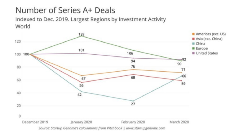 根据Startup Genome的一份新报告,自2019年12月新冠病毒危机爆发以来,全球风险投资资金已经下降了20%。而在中国跌幅更为明显。中国在1月和2月的融资额相对于世界其他地区下降了50%以上。Startup Genome表示,中国在3月份确实出现了反弹,尽管数字仍低于危机前的水平。