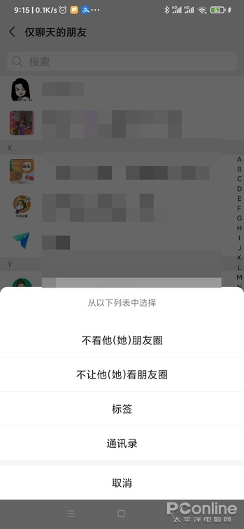 在这个分类的下方还有添加与移出两个功能,其中添加的功能让用户可以从不看朋友圈、标签这两种规则中批量将里边的好友设置为仅聊天。