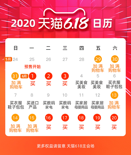 天猫618负责人家洛当日表示,规模是去年2倍,优惠力度空前。他预测天猫618将可以帮助商家打赢疫情后的“回血之战”,为下半年的发展带来宝贵的希望。