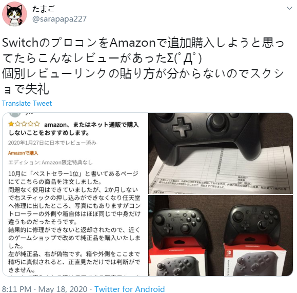 近日有玩家准备在日亚买NSpro手柄时发现有其他网友留言评论称买到超精仿NSpro手柄,因为坏了送修时任天堂表示是假货而直接不给修理退了回来引发网友热议,有媒体询问了任天堂相关部门,任天堂表示已经知道确实有假货在市面流通,正计划采取手段。