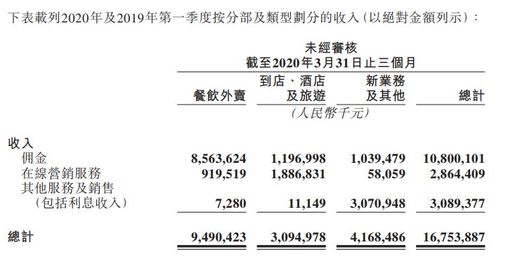 外卖受疫情影响大,佣金降幅13.7%大于收入