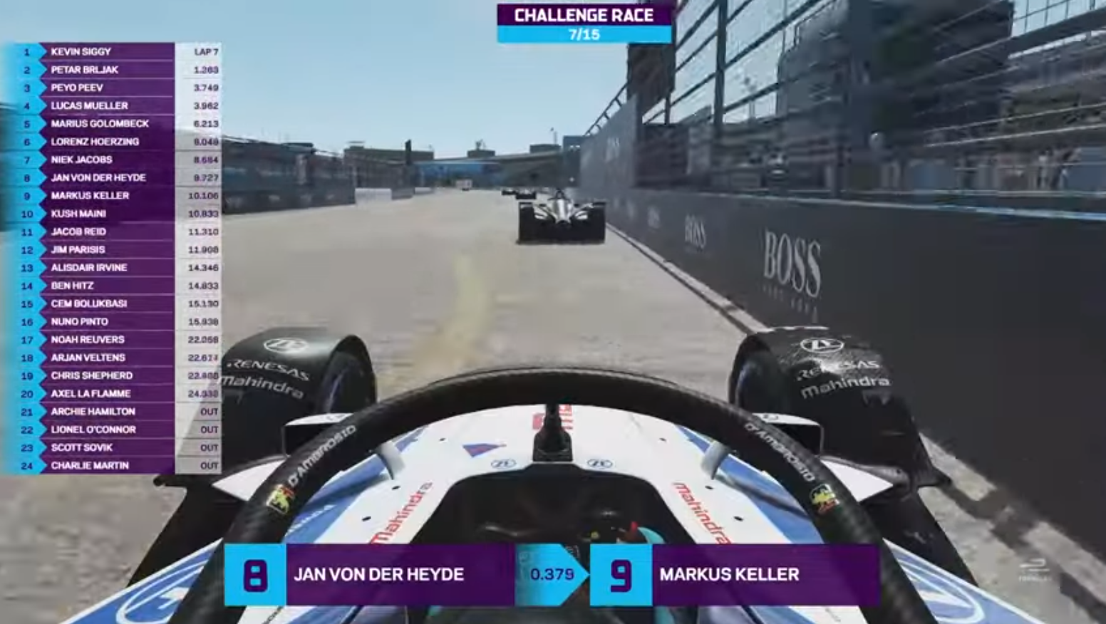 前F1赛车手斯Stoffel Vandoorne在柏林Tempelhof虚拟赛道上跑了15圈,获得了第二名。他说,他相信有人在用Abt的名字参赛。“我真的不开心,因为开车的不是Daniel,他把一切都搞砸了。这太荒谬了,”他说道,“我怀疑是不是Daniel在车里面。”