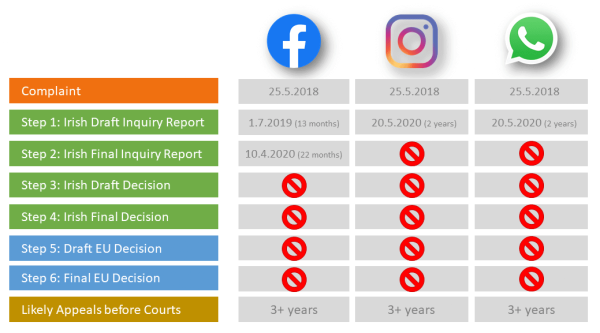 然而并不是每个人都对事情的进展感到满意。行业观察人士及像Max Schrems等这样的隐私维权人士担心,对Facebook和谷歌等大公司的调查一直进展缓慢,调查效率极低,而且有些卡夫卡式,所以几乎起不到任何作用。