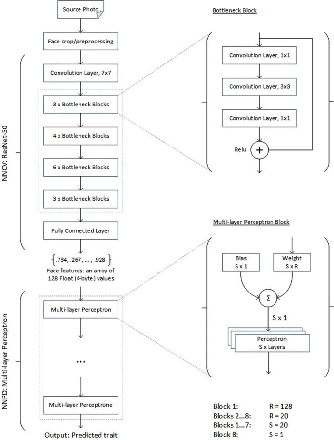 计算机视觉神经网络(NNCV)与个性诊断神经网络(NNPD)的层次体系结构。