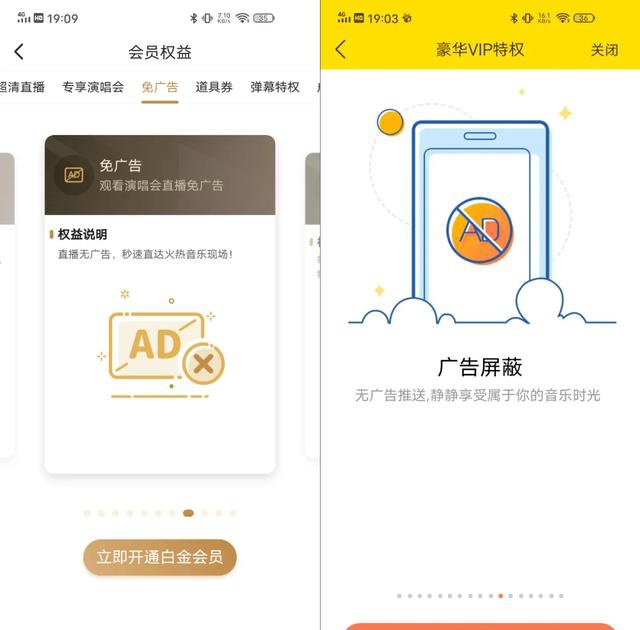 我们来看看其他几家音乐 App 他们对于“ 会员免广告 ” 是怎么来定义的。