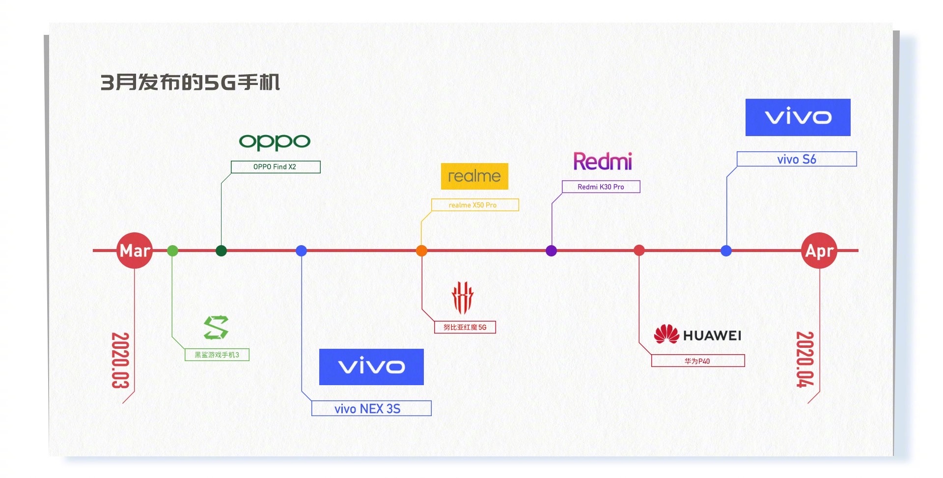 步入 2020 年,无论是在国内手机厂商“All in 5G”策略加持下的新机发布频率,还是运营商纷纷打出的“5G 尝鲜”套餐广告,我们总能从各方各面感受到明显加快的 5G 普及速度。以“华米OV”为代表的国产手机厂商在过去的 2020 年上半年已经累计推出了超过十款 5G 手机。