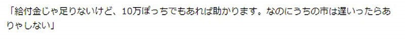 “虽然光靠政府的补助还是不够,但也算帮了大忙,只不过我住的市发钱发得特别慢啊”
