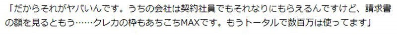 “我的处境越来越不妙,虽然我们公司的薪水不少,但是看到帐单的那一刻……很多张信用卡都已经刷爆了,总共已经砸了数百万。”