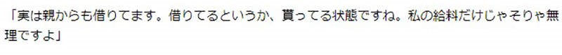 “我还跟父母借钱,与其说是借不如说是拿吧,光靠我的薪水已经无法偿还了”
