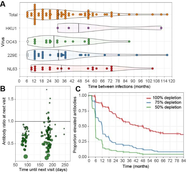 研究人员查看了10名男性35岁以上的医疗记录,以确定四种季节性人类冠状病毒中任何一种的抗体水平。这些男性在3个月或6个月时进行了测试,研究人员发现 “冠状病毒的保护性免疫力持续时间短得惊人”。