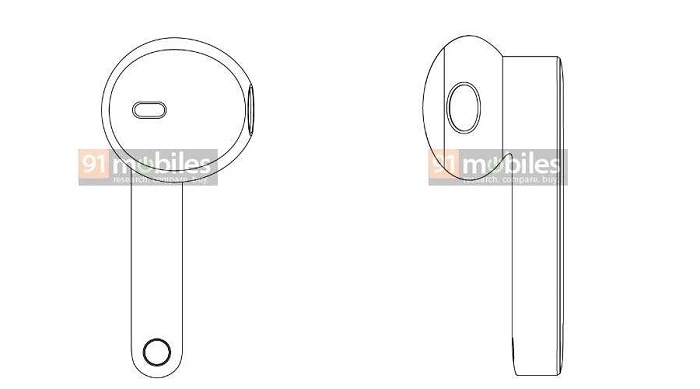 由图可知,联想 TWS 耳机新品采用了类似苹果 AirPods 的设计,但挂杆部分较为平整,或支持基于触摸的音频控制,且每只耳机在底部配备了充电针脚触点和麦克风。