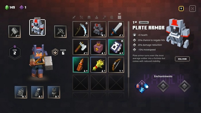 为了增强游戏的可玩性,开发者还为武器和防具引入了一个“附魔(enchantment)”系统。即每一件武器与防具除了本身的数值不同外,还会有三个名为附魔槽的栏位存在,这些栏位激活后可以为装备带来不同的效果,如弓箭射出多个箭头,剑刃涂毒、让走过的地面着火等