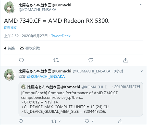 出现这么一款产品并不奇怪,Navi家族现在最低端是RX 5500 XT,完全有空间向下延伸,但诡异的是,RX 5500 XT配置了22组计算单元、1408个流处理器,RX 5300怎么反而更多了?