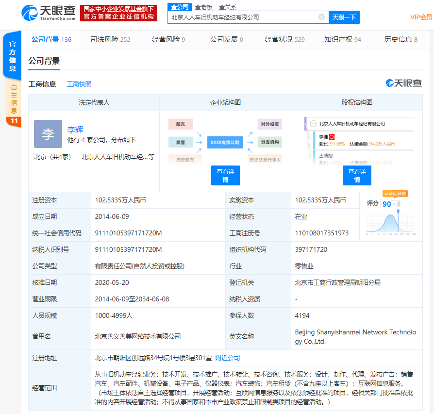 事实上,近日,人人车的另一家关联公司北京善义善美科技有限公司也被北京市朝阳区人民法院列为被执行人,执行标的为5118074。