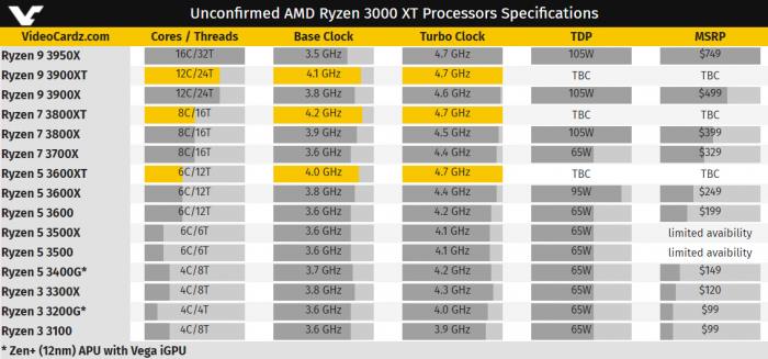 日前有消息称,AMD将会推出锐龙3000XT系列处理器,包括锐龙9 3900XT、锐龙7 3800XT、锐龙5 3600XT,比旧版普遍提速200-300MHz,其中基准频率全部超过4GHz,12核心的锐龙9 3900XT更是可以加速到最高4.8GHz。