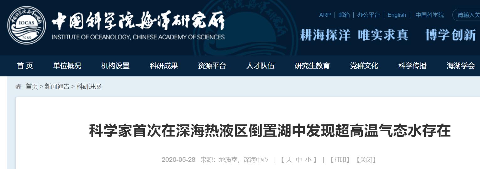 5月29日消息,记者日前从中国科学院海洋研究所官网了解到, 中国科学院海洋研究所阎军课题组在2018年“科学”号科考船深海热液航次中,利用我国自主研发的深海激光拉曼光谱原位探测系统(RiP)和深海热液温度探针在冰冷的海底之上首次观测到气态水存在的证据。