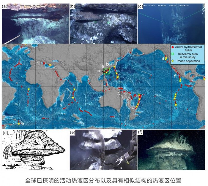 值得关注的是,气态水能够在该区域的海底之上存留,得益于该区域独特的热液烟囱构造。“蘑菇型”烟囱结构形成了一个半封闭的体系,将过热的高温流体与周围低温海水隔离。高温热液喷发物通过倒置湖的镜面(气液界面)向海水缓慢扩散,这种特殊的喷发模式有利于热液硫化物在烟囱边缘沉淀,从而减弱对海洋环境的影响。金属元素的溶解与运移受到流体密度的控制,因此低密度气相和超临界相热液喷发系统在元素分配和硫化物矿化过程上与常规热液系统有明显差异。当前,超临界相与气相热液喷发系统仅在洋中脊热液区被观测到,此次在弧后热液区观测到的气相热液喷发系统与洋中脊的超临界相与气相的喷发系统相比,具备更加稳定的喷发条件。对此类气相热液喷发系统的原位探测,有助于揭示此类低密度气相热液喷发系统的热液硫化物矿化过程以及对深海环境的影响。