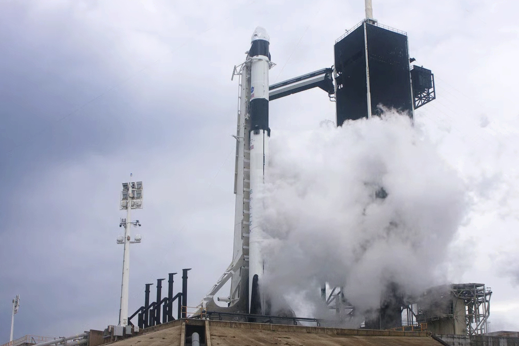 SpaceX最担心的是佛罗里达州卡纳维拉尔角附近地区的带电云。带电云对火箭发射来说尤其危险。如果火箭飞得离带电云足够近,闪电可能会击中火箭,造成损害,危及飞行任务。任务控制人员预测,发射后10分钟内天气就会放晴。然而在既定的发射时间,天气却不太好。