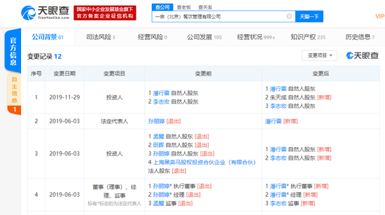 值得注意的是,天眼查数据显示,2019年6月3日,该公司法定代表人孙丽婷退出,变更为潘行雷;同时自然人股东孟醒、田晖、孙丽婷,法人股东上海黑奔马股权投资合伙企业(有限合伙)退出投资人行列,取而代之的是自然人股东潘行雷、李志宏;同年11月,新增自然人股东朱天成。