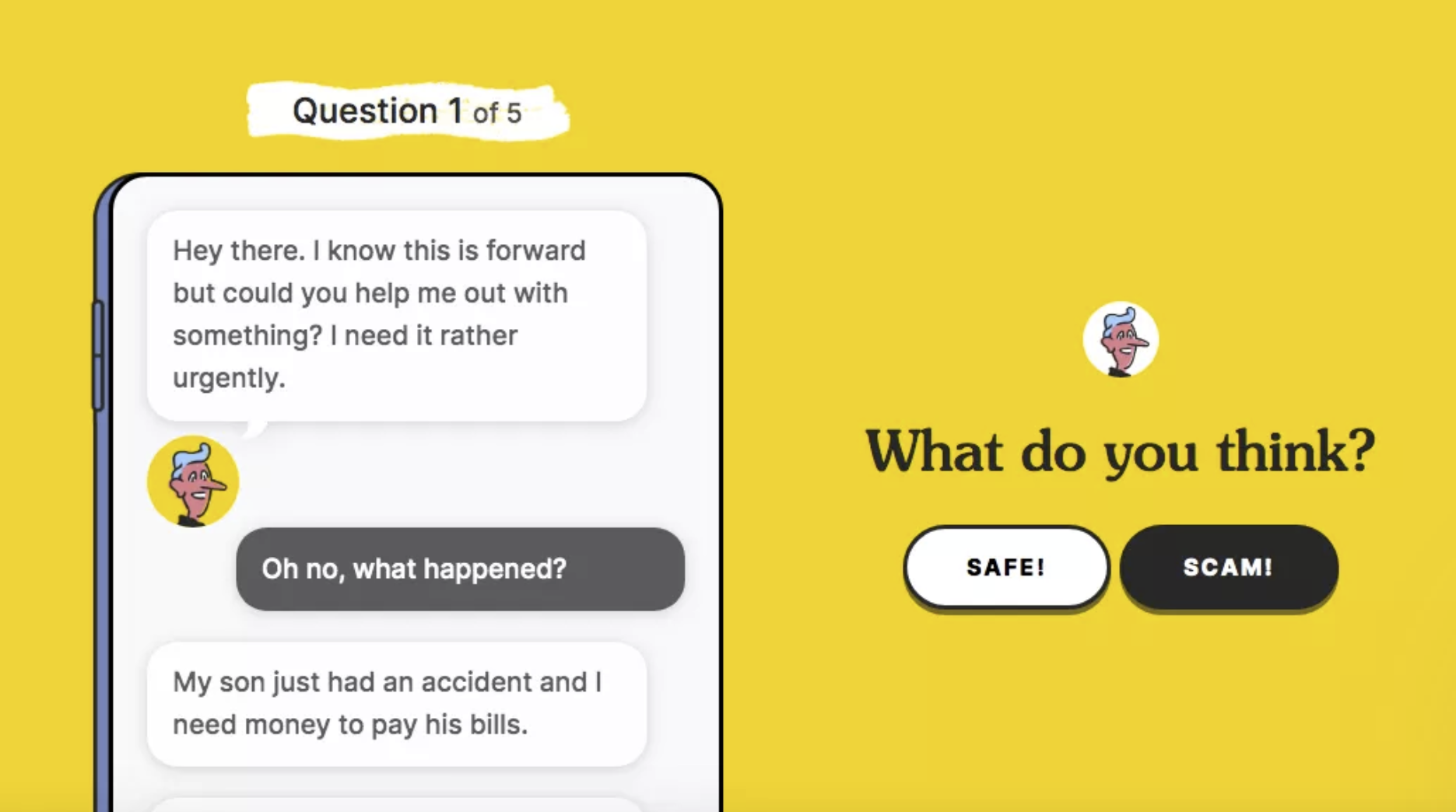 谷歌与致力于帮助网络欺诈受害者的非营利组织“网络犯罪支持网络”(Cybercrime Support Network)合作推出了这一网站。该网站包括一个小测验,通过常见的诈骗场景,比如收到一条关于赢得夏威夷之旅的消息,通过这个小测验来测试用户反欺诈的能力。