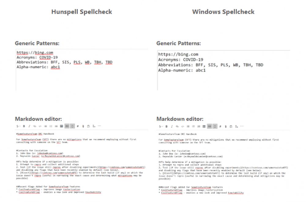 下面是Hunspell Spellcheck和Windows Spellcheck的对比分析。