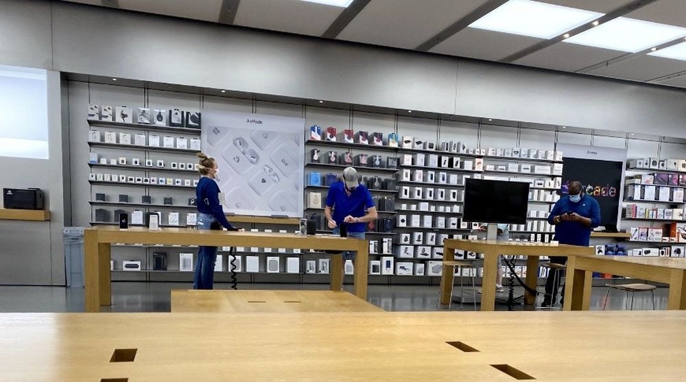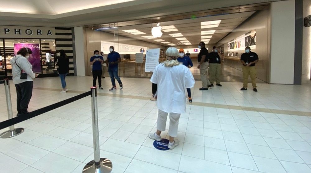 外媒AppleInsider就实地走访位于弗吉尼亚州弗吉尼亚海滩的Lynnhaven购物中心内的Apple Store,走进门店的时候就会立即注意到一些变化。苹果的多位员工在外面引导顾客排队,其中一支队伍是进入门店内部的,还有一支队伍是进行预约的。