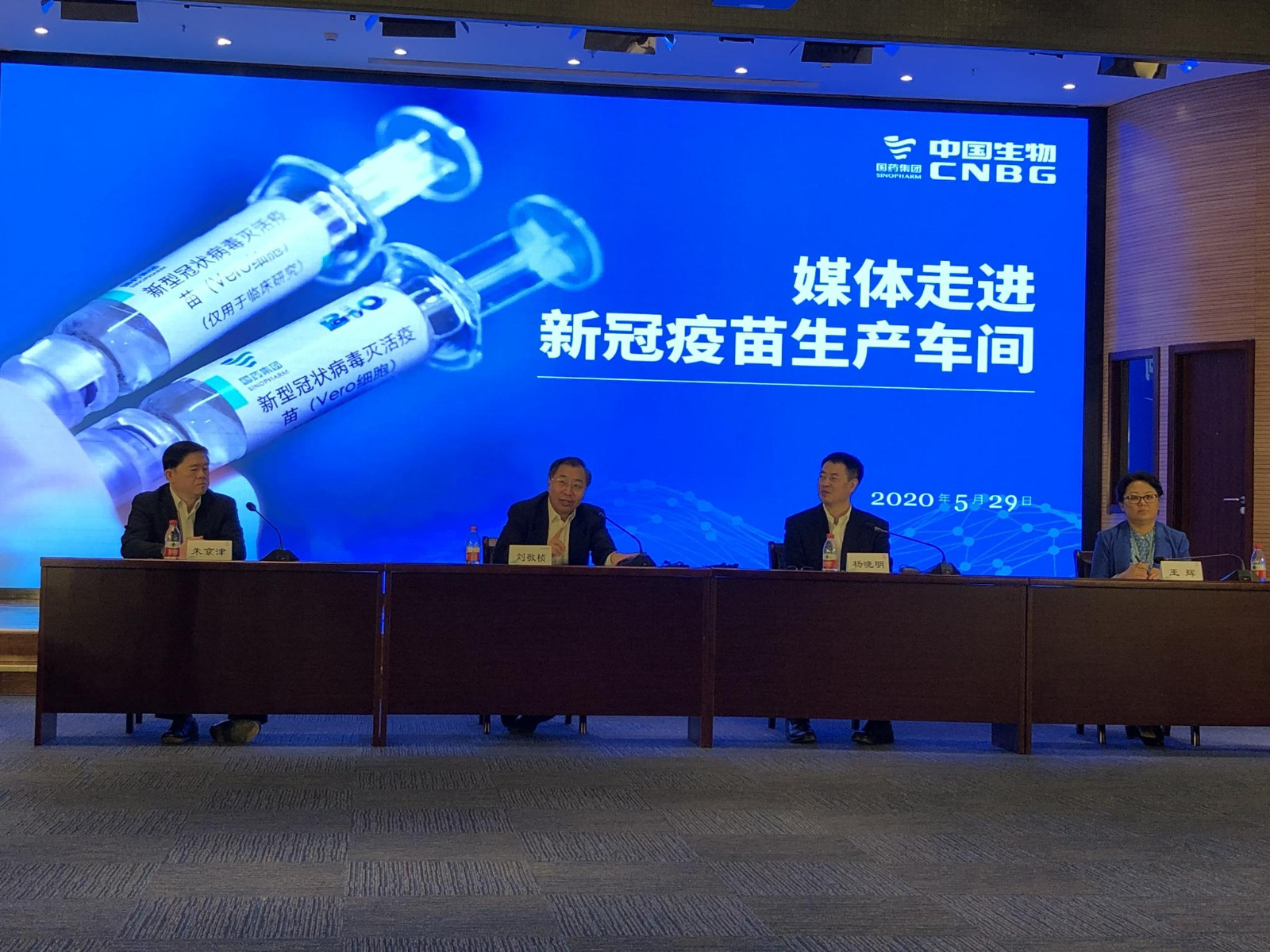 5月29日,国药集团中国生物技术股份有限公司首次对媒体开放位于北京的新冠疫苗生产车间。国药集团党委书记、董事长刘敬桢表示,包括他本人在内的国药集团所属四级企业党政主要负责人在内的180名志愿者带头接种了新冠灭活疫苗,通过志愿者人体预测试表明,受试者抗体已完全达到抵抗新冠病毒水平,保护率100%;近期又有数百名国药集团干部员工自愿接种,也都显示疫苗安全有效。
