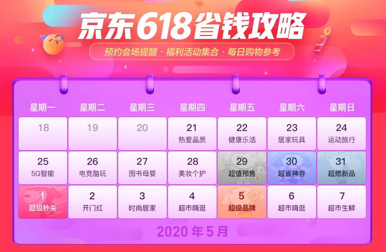 一年一度的京东6·18十七周年庆今日开始“步入正轨”,从5月29日下午6点起您应该每天从这里进入主会场看一遍,因为不同品类的商品的6·18活动将从这个时间节点开始提供预售服务,活动大厅会在接下来的几日不断派发各种“神券”和最高618元的京享红包,无门槛全品类全平台可使用。