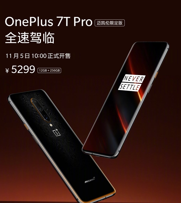 此后,一加推出了多款迈凯伦定制版的手机,包括一加6T迈凯伦定制版、一加7T Pro迈凯伦定制版,后者是去年10月底发布的,11月5日正式发售,售价5299元(12GB+256GB)。
