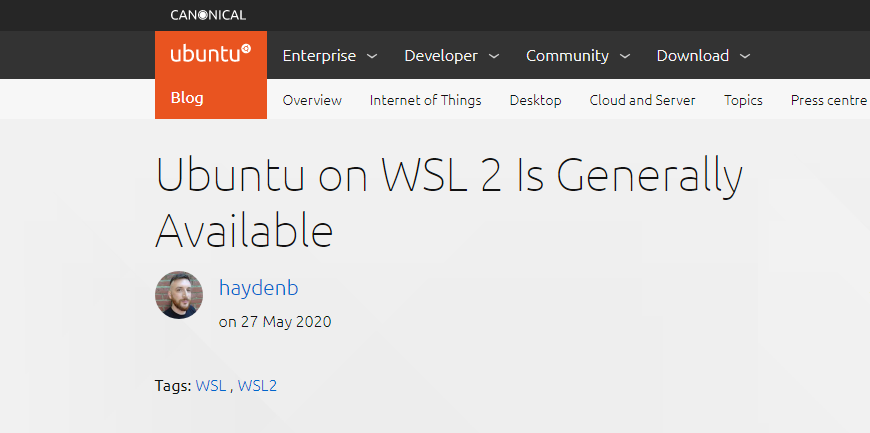 Ubuntu 是完全支持 WSL 2 的首批发行版之一。Canonical 公司表示,如果希望体验 WSL 2,可以从 Microsoft Store 下载 Ubuntu 20.04 LTS。